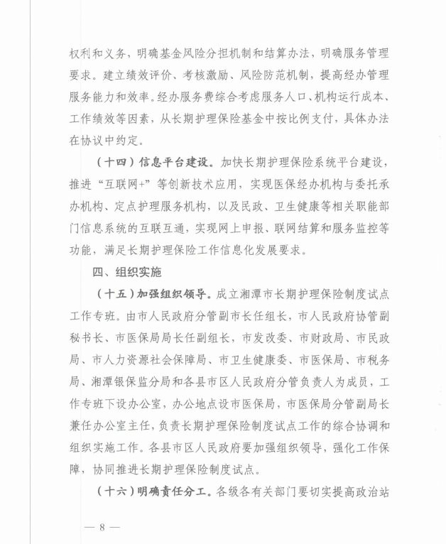 潭政辦發(fā)〔2020〕33號湘潭市人民政府辦公室關(guān)于印發(fā)《湘潭市長期護理保險制度試點實施方案》的通知