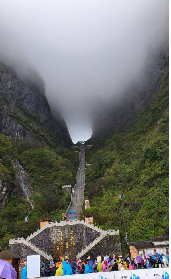 站在洞口,俯視天梯,上面依然在堅持努力爬行的人們,大概是懷著一種信仰,相信爬完這999級臺階后,會有長長久久的幸福!
